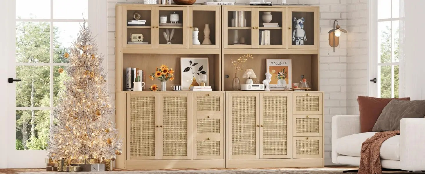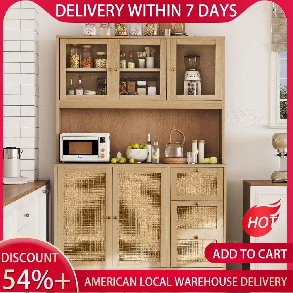 - Multifunctional Purpose: This tall cupboard cabinet not only can be a hutch cabinet in kitchen, but also a buffet sideboard cabinet, coffee bar cabinet or wine rack cabinet in the dining room to store cans, tableware and wine, a storage cabinet or display cabinet, which is suitable for living room or entryway to store books, trophies, collections and decorations