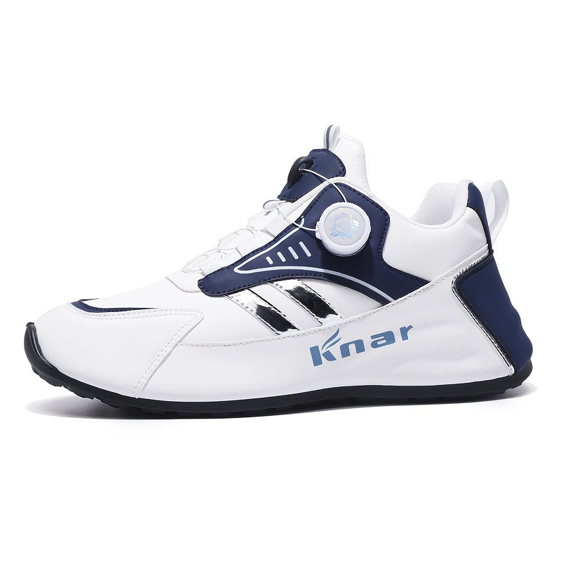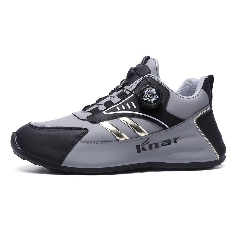 MAINALUN Men'S Lightweight Breathable Sneakers - Thick Cushioned Sole for Outdoor Walking, Running, Jogging & Camping - Magnetic Closure, Navy Blue with Golden Accents, All-Season Comfort, Casual Sportswear, Fabric Lined Inte